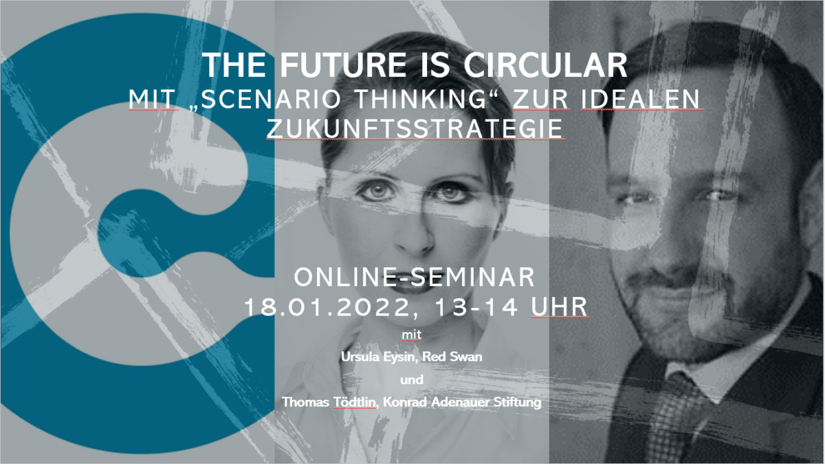 Als strategisches Instrument dazu eignet sich der Szenario-Prozess – eine Methode mit der sich Unsicherheit verlässlich und nachhaltig beseitigen und ein klarer Plan für die Zukunft ausarbeiten lässt. Durch die Analyse unterschiedlicher Szenarien ist es möglich, eine klare Strategie für den Übergang in eine „Circular Future“ zu entwickeln. In diesem Online Seminar, vom 18. Jänner 2022 mit 90 Teilnehmer:innen, lernen Sie die Methode und ihre Anwendungsmöglichkeiten kennen und erfahren aus erster Hand, wie sich ein solcher Prozess in einer Organisation gestaltet und was er bewirkt.
