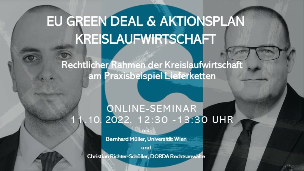 Der EU Green Deal bringt zahlreiche Regeln auf den Weg, welche die Erreichung der Klimaziele bis 2050 und die dafür nötige Transformation zu einer Kreislaufwirtschaft sowie zu einer nachhaltigen Lebensweise unterstützen sollen. Welche Konsequenzen werden für österreichische Unternehmen erwartet? Veranstalter: respACT & Circular Economy Forum Austria Input: Mag.a Alexandra Ciarnau (DORDA Rechtsanwälte &…